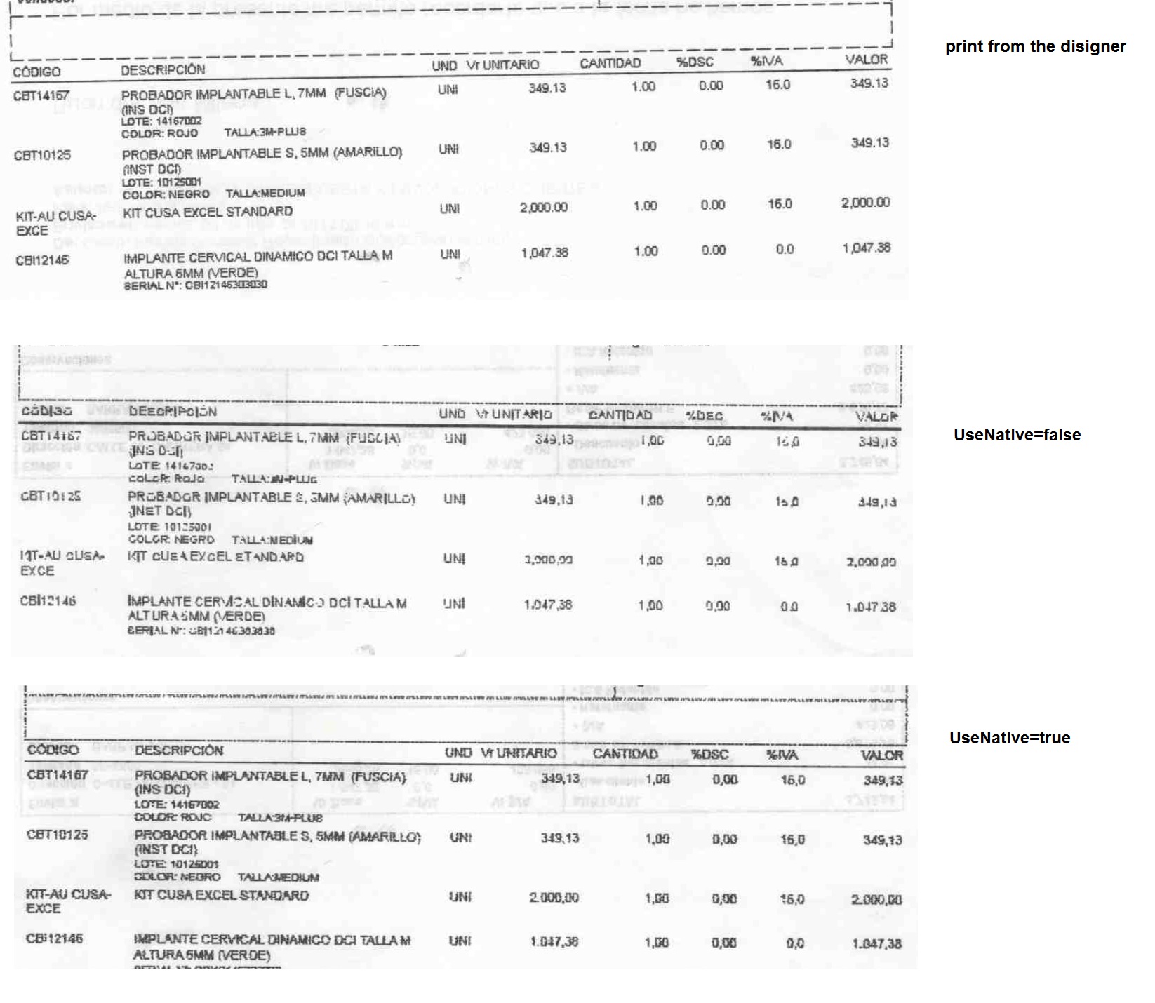 With UseNativePrinting=false is more pixelated and is unreadable.