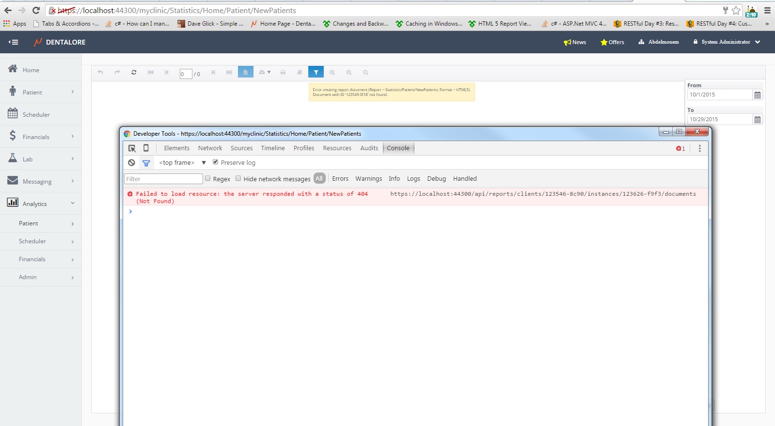But when clicking the print preview button for single page report, it fails. From browser console we see that the request receives 400 response.
