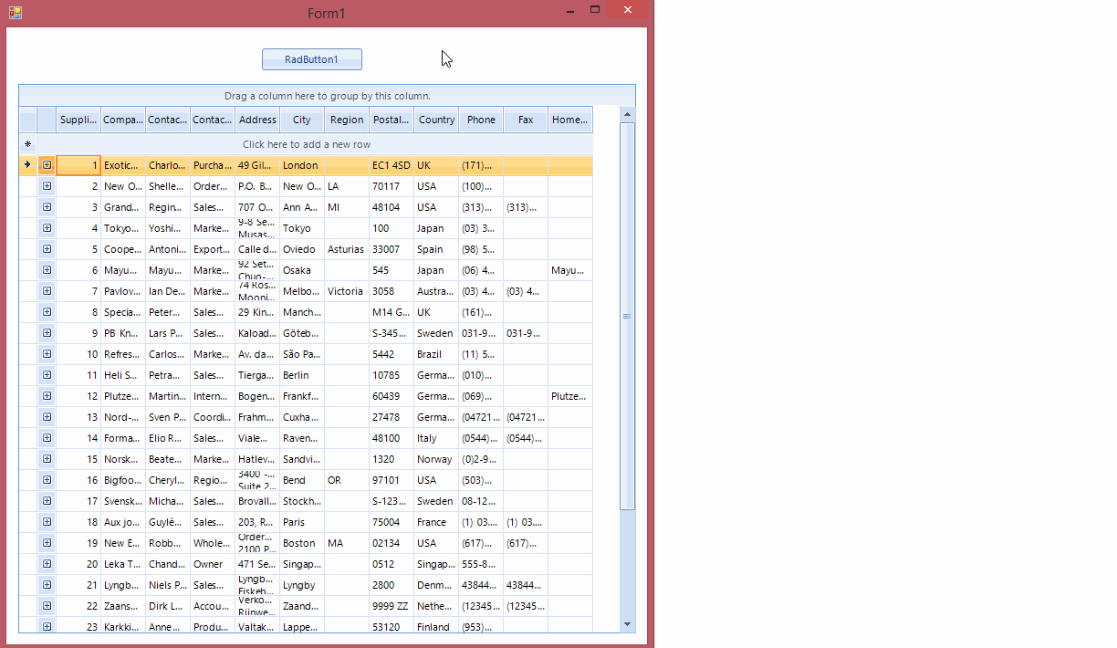public partial class Form1 : Form{ public Form1() { InitializeComponent(); DataTable dataTable = new DataTable(); dataTable.Columns.Add("Id", typeof(int)); dataTable.Columns.Add("Name", typeof(string)); dataTable.Columns.Add("IsValid", typeof(bool)); for (int i = 0; i < 10; i++) { dataTable.Rows.Add(i, "Name " + i, i % 2 == 0); } this.radGridView1.DataSource = dataTable; this.radGridView1.AutoSizeColumnsMode = Telerik.WinControls.UI.GridViewAutoSizeColumnsMode.Fill; DataTable dataTable2 = new DataTable(); dataTable2.Columns.Add("Age", typeof(int)); dataTable2.Columns.Add("Date", typeof(DateTime)); dataTable2.Columns.Add("isTrue", typeof(bool)); for (int i = 20; i < 30; i++) { dataTable2.Rows.Add(i, DateTime.Now.AddDays(i), i % 2 != 0); } this.radGridView2.DataSource = dataTable2; this.radGridView2.AutoSizeColumnsMode = Telerik.WinControls.UI.GridViewAutoSizeColumnsMode.Fill; } private void radButton1_Click(object sender, EventArgs e) { //this.radGridView1.Print(true); this.radGridView1.PrintPreview(); } private void radButton2_Click(object sender, EventArgs e) { //this.radGridView2.Print(true); this.radGridView2.PrintPreview(); }}I hope that this information helps. Should you have further questions please do not hesitate to write back.