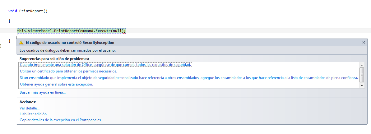 When I debug I can see the PrintReportCommand execution is failing (checking CanExecute returns false), possibly due to the ReportViewerModel state being ViewerWorkInProgressState.