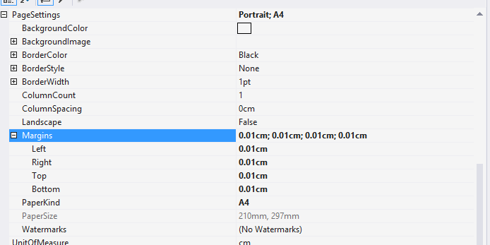 In case, you use this report as a SubReport item its PageSettings will be ignored and the settings of report will be applied instead.