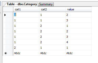 cat 1 cat 2 value