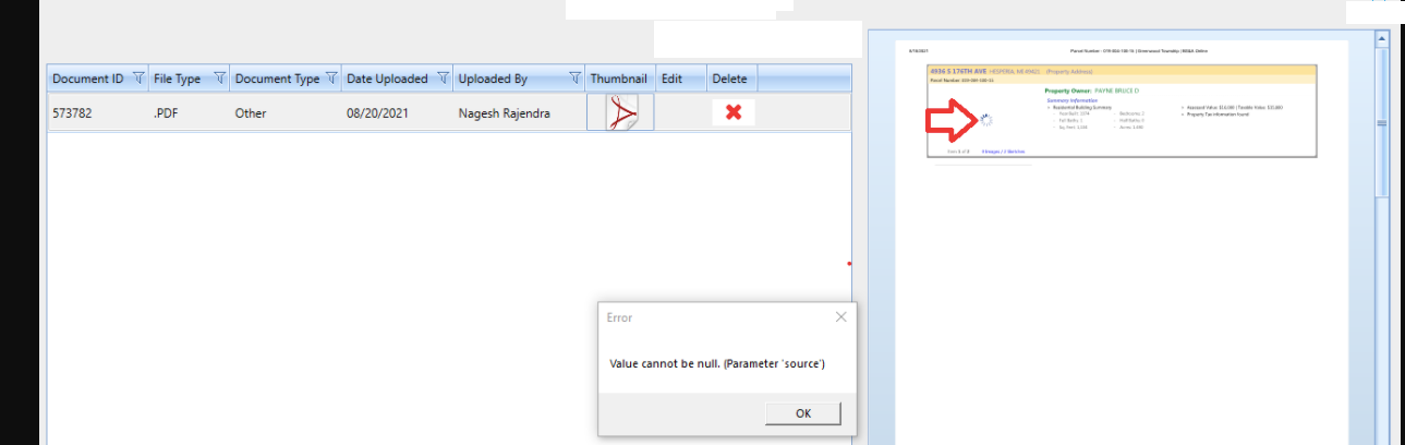 You can download the similar file in the given link to regenerate the error: https://bsaonline.com/SiteSearch/SiteSearchDetails?SearchFocus=All%20Records&SearchCategory=Address&SearchText=4936%20S%20176TH%20AVE&uid=1665&PageIndex=1&ReferenceKey=019-004-100-15&ReferenceType=0&SortBy=&SearchOrigin=0&RecordKeyDisplayString=019-004-100-15&RecordKey=019-004-100-15&RecordKeyType=0