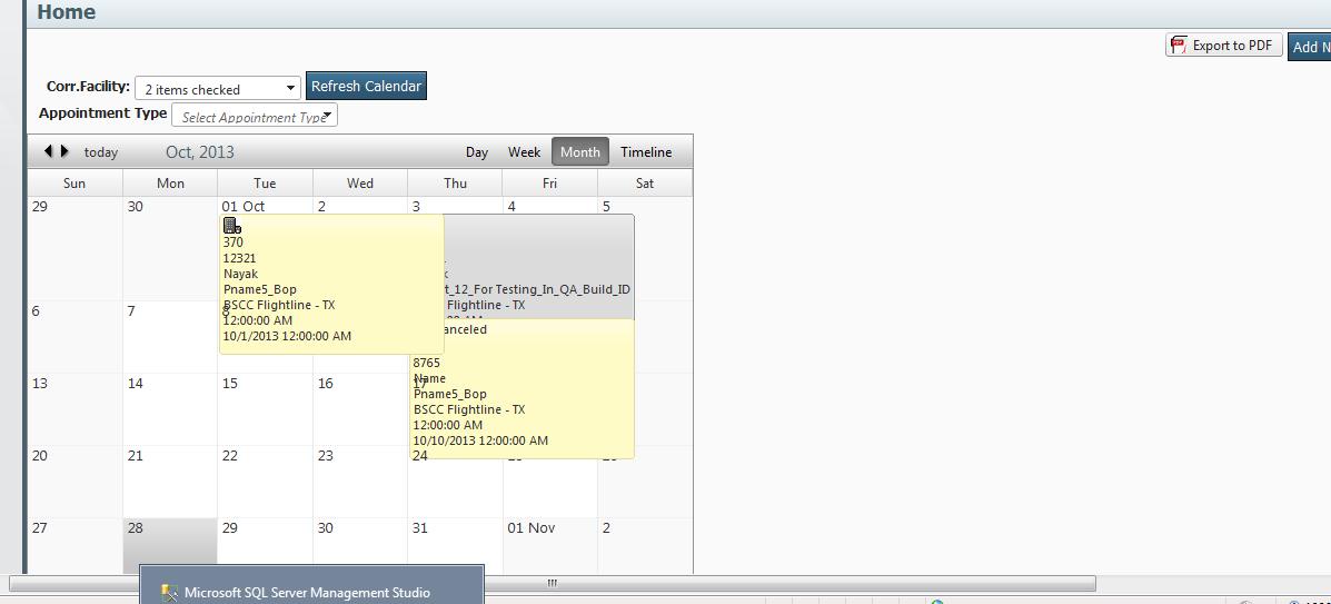 DataSubjectField="Facility" AutoPostBack="true" DataStartField="Appointment.ConfirmedDate" MonthView-VisibleAppointmentsPerDay="1"