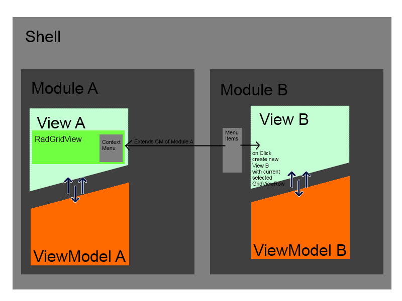 in my current project i have some loosely coupled modules. Let´s say in module A we have a RadGridView with a region to extend the context menu.