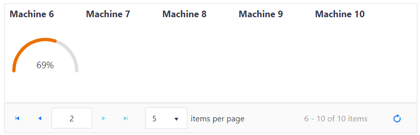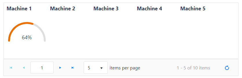 OEE value starts from 60% & increases by 1 for each item. You can see that in the screenshots, in page 1, only one arc gauge with 64% is displayed. The arc gauge with value 60% ~ 63% are missing.