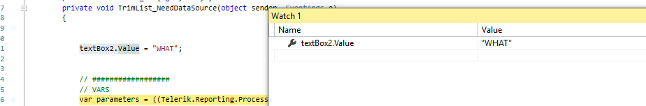 An important change as of R3 2016 is that any changes of the report definition or its items in events will not be applied. In events you can access and modify only the processing elements - Understanding events . In previous versions changes were propagated, but the result was unpredictable due to the relation to the order of processing of inner elements of the report.