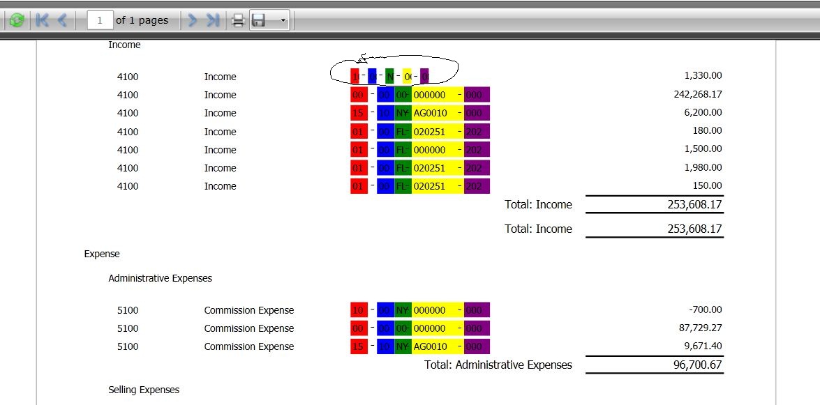 private Unit oneUnit = new Unit(100/8); private Unit originalTextSeg1Width; private Unit originalTextSeg2Width; private Unit originalTextSeg3Width; private Unit originalTextSeg4Width; private Unit originalTextSeg5Width; private Unit originalTextDash1X; private Unit originalTextDash2X; private Unit originalTextDash3X; private Unit originalTextDash4X; private Unit originalTextSeg2X; private Unit originalTextSeg3X; private Unit originalTextSeg4X; private Unit originalTextSeg5X; public GLIncomeStatementDT() { // // Required for telerik Reporting designer support // InitializeComponent(); //Original Width originalTextSeg1Width = textSeg1.Width; originalTextSeg2Width = textSeg2.Width; originalTextSeg3Width = textSeg3.Width; originalTextSeg4Width = textSeg4.Width; originalTextSeg5Width = textSeg5.Width; //Original X location originalTextDash1X = textDash1.Location.X; originalTextDash2X = textDash2.Location.X; originalTextDash3X = textDash3.Location.X; originalTextDash4X = textDash4.Location.X; originalTextSeg2X = textSeg2.Location.X; originalTextSeg3X = textSeg3.Location.X; originalTextSeg4X = textSeg4.Location.X; originalTextSeg5X = textSeg5.Location.X; // textSeg1.ItemDataBound += new EventHandler(textSeg1_ItemDataBound); textSeg2.ItemDataBound += new EventHandler(textSeg2_ItemDataBound); textSeg3.ItemDataBound += new EventHandler(textSeg3_ItemDataBound); textSeg4.ItemDataBound += new EventHandler(textSeg4_ItemDataBound); textSeg5.ItemDataBound += new EventHandler(textSeg5_ItemDataBound); this.DataSource = null; this.NeedDataSource += new EventHandler(FilteredReport_NeedDataSource); // // TODO: Add any constructor code after InitializeComponent call // } #region Setup Seg's Width dynamically void textSeg5_ItemDataBound(object sender, EventArgs e) { Telerik.Reporting.Processing.TextBox textSeg5Position = (Telerik.Reporting.Processing.TextBox)sender; textSeg5.Style.BackgroundColor = Color.Purple; textSeg5.Width = originalTextSeg5Width * (textSeg5Position.Text.Length); } void textSeg4_ItemDataBound(object sender, EventArgs e) { Telerik.Reporting.Processing.TextBox textSeg4Position = (Telerik.Reporting.Processing.TextBox)sender; textSeg4.Style.BackgroundColor = Color.Yellow; textSeg4.Width = originalTextSeg4Width * (textSeg4Position.Text.Length); textDash4.Location = new PointU() { X = originalTextDash4X + textSeg4.Width - oneUnit, Y = textDash4.Location.Y }; textSeg5.Location = new PointU() { X = originalTextSeg5X + textSeg4.Width - oneUnit, Y = textSeg5.Location.Y }; } void textSeg3_ItemDataBound(object sender, EventArgs e) { Telerik.Reporting.Processing.TextBox textSeg3Position = (Telerik.Reporting.Processing.TextBox)sender; textSeg3.Style.BackgroundColor = Color.Green; textSeg3.Width = originalTextSeg3Width * (textSeg3Position.Text.Length); textDash3.Location = new PointU() { X = originalTextDash3X + textSeg3.Width - oneUnit, Y = textDash3.Location.Y }; textSeg4.Location = new PointU() { X = originalTextSeg4X + textSeg3.Width - oneUnit, Y = textSeg4.Location.Y }; textDash4.Location = new PointU() { X = originalTextDash4X + textSeg3.Width - oneUnit, Y = textDash4.Location.Y }; textSeg5.Location = new PointU() { X = originalTextSeg5X + textSeg3.Width - oneUnit, Y = textSeg5.Location.Y }; } void textSeg2_ItemDataBound(object sender, EventArgs e) { Telerik.Reporting.Processing.TextBox textSeg2Position = (Telerik.Reporting.Processing.TextBox)sender; textSeg2.Style.BackgroundColor = Color.Blue; textSeg2.Width = originalTextSeg2Width * (textSeg2Position.Text.Length); textDash2.Location = new PointU() { X = originalTextDash2X + textSeg2.Width - oneUnit, Y = textDash2.Location.Y }; textSeg3.Location = new PointU() { X = originalTextSeg3X + textSeg2.Width - oneUnit, Y = textSeg3.Location.Y }; textDash3.Location = new PointU() { X = originalTextDash3X + textSeg2.Width - oneUnit, Y = textDash3.Location.Y }; textSeg4.Location = new PointU() { X = originalTextSeg4X + textSeg2.Width - oneUnit, Y = textSeg4.Location.Y }; textDash4.Location = new PointU() { X = originalTextDash4X + textSeg2.Width - oneUnit, Y = textDash4.Location.Y }; textSeg5.Location = new PointU() { X = originalTextSeg5X + textSeg2.Width - oneUnit, Y = textSeg5.Location.Y }; } void textSeg1_ItemDataBound(object sender, EventArgs e) { Telerik.Reporting.Processing.TextBox textSeg1Position = (Telerik.Reporting.Processing.TextBox)sender; textSeg1.Style.BackgroundColor = Color.Red; textSeg1.Width = originalTextSeg1Width * (textSeg1Position.Text.Length); textDash1.Location = new PointU() { X = originalTextDash1X + textSeg1.Width - oneUnit, Y = textDash1.Location.Y }; textSeg2.Location = new PointU() { X = originalTextSeg2X + textSeg1.Width - oneUnit, Y = textSeg2.Location.Y }; textDash2.Location = new PointU() { X = originalTextDash2X + textSeg1.Width - oneUnit, Y = textDash2.Location.Y }; textSeg3.Location = new PointU() { X = originalTextSeg3X + textSeg1.Width - oneUnit, Y = textSeg3.Location.Y }; textDash3.Location = new PointU() { X = originalTextDash3X + textSeg1.Width - oneUnit, Y = textDash3.Location.Y }; textSeg4.Location = new PointU() { X = originalTextSeg4X + textSeg1.Width - oneUnit, Y = textSeg4.Location.Y }; textDash4.Location = new PointU() { X = originalTextDash4X + textSeg1.Width - oneUnit, Y = textDash4.Location.Y }; textSeg5.Location = new PointU() { X = originalTextSeg5X + textSeg1.Width - oneUnit, Y = textSeg5.Location.Y }; }