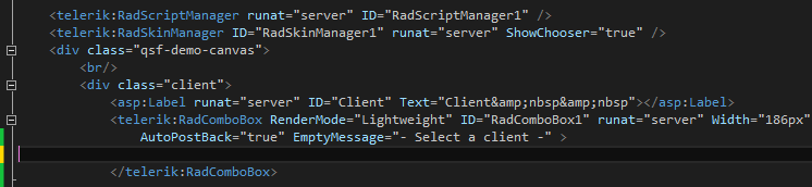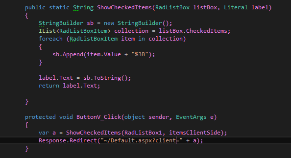 I also changed the radcombobox1.text to radcombobox.selectvalue and it didn't work.