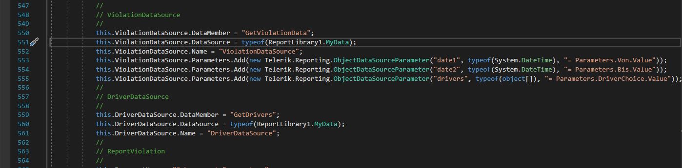 public List<DriverViolationReport> GetViolationData(DateTime date1, DateTime date2, object[] drivers) {...
