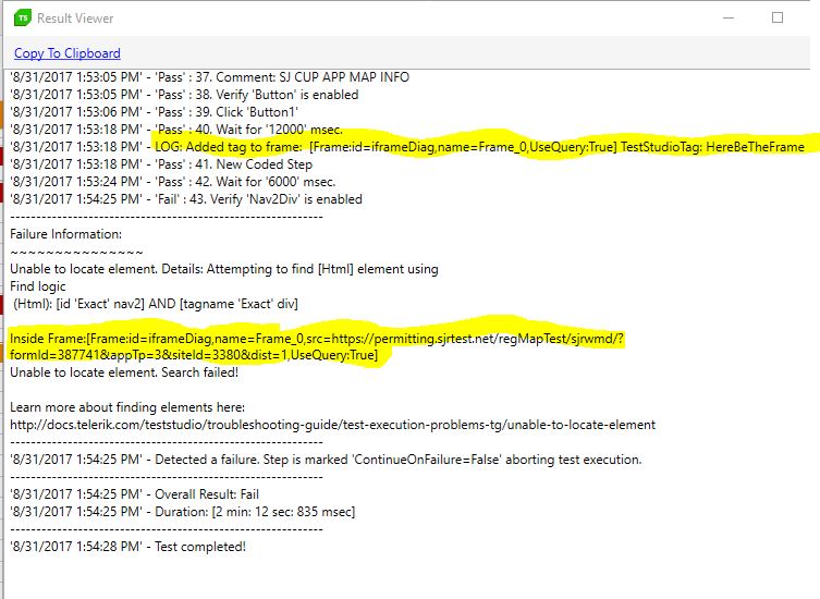 - Which is the product version you are using. If it is not the latest available (2017.2.824) - you could download it from your Telerik account - Downloads section. Note that Run-Time version should be the same as the Test Studio one.There are fixes in that version related to frames that could resolve the problem as well.