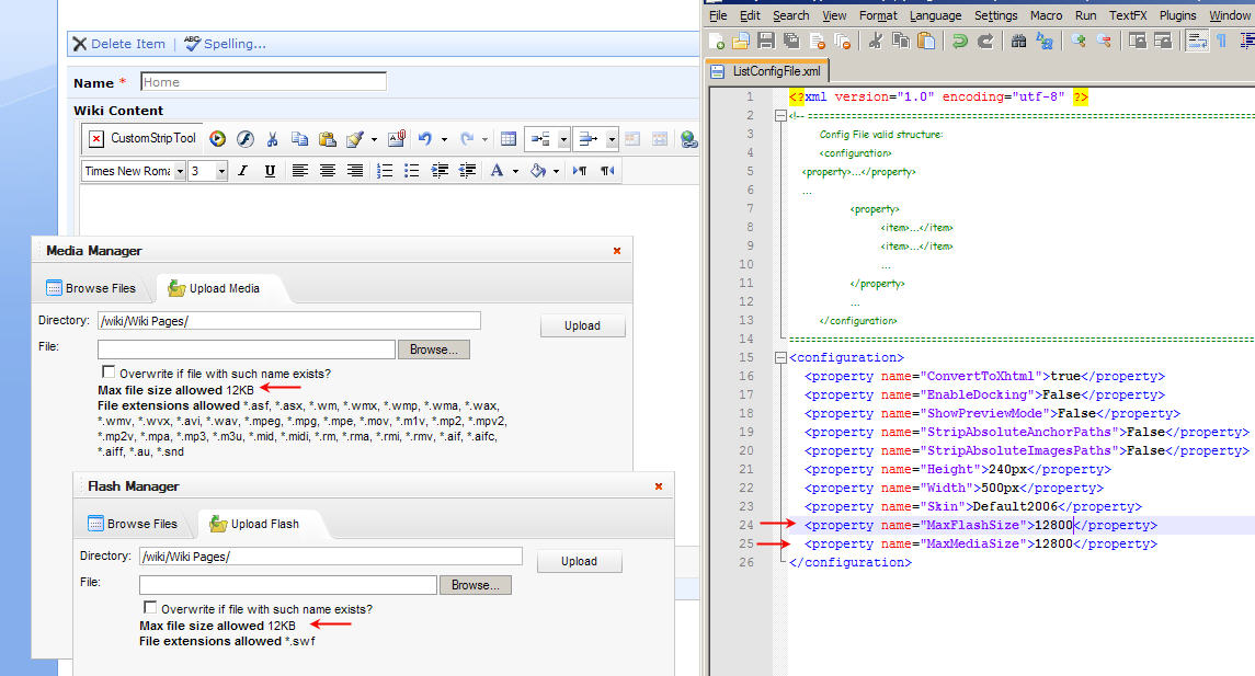 - Can't config file size of Media and Falsh in listconfig.xml