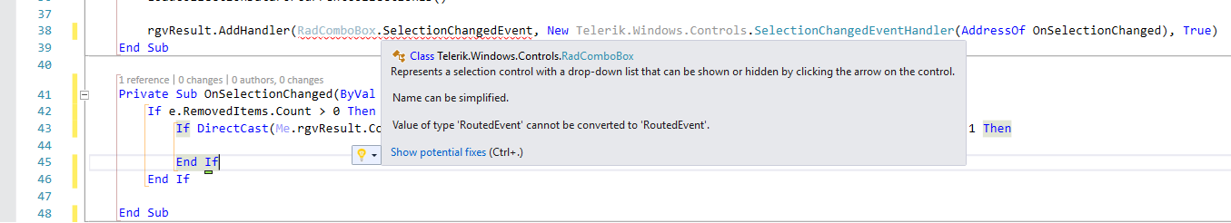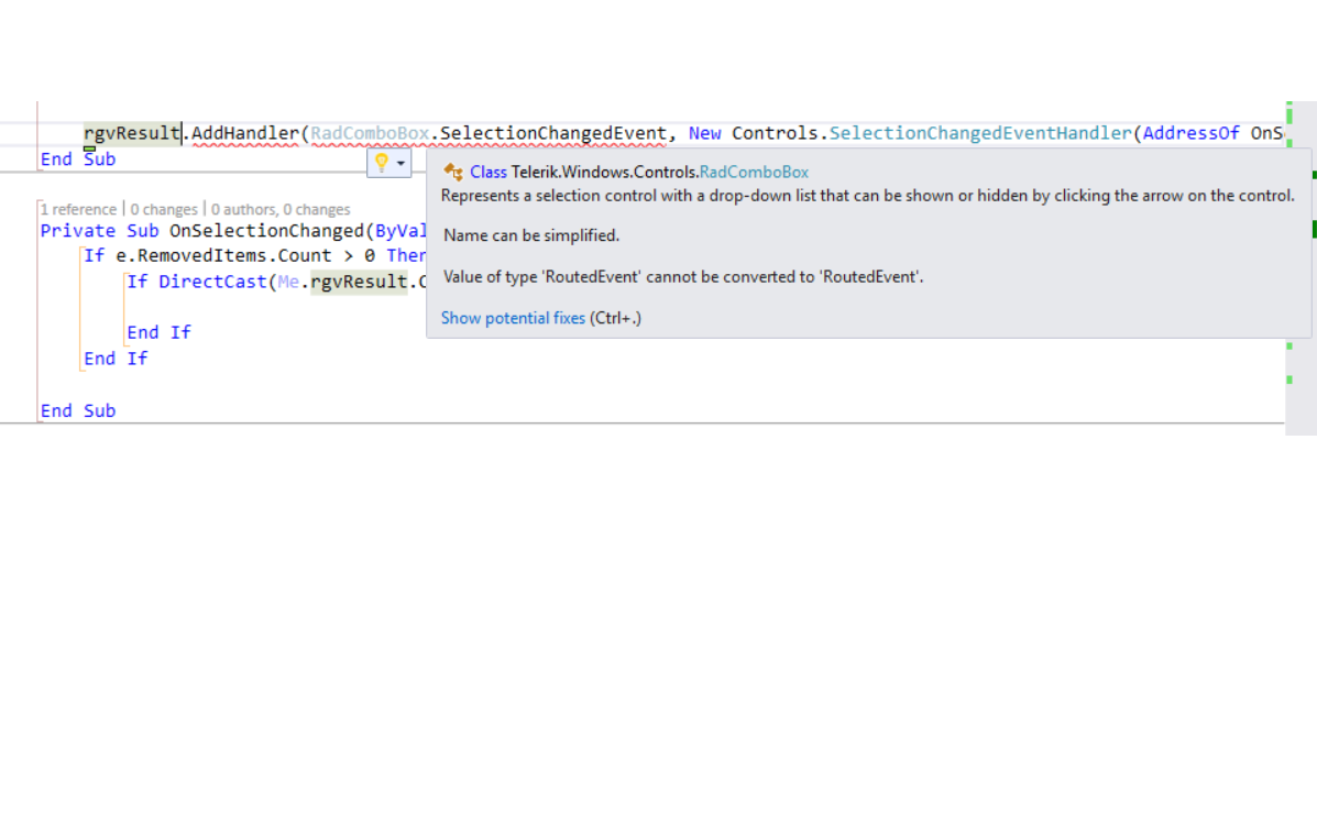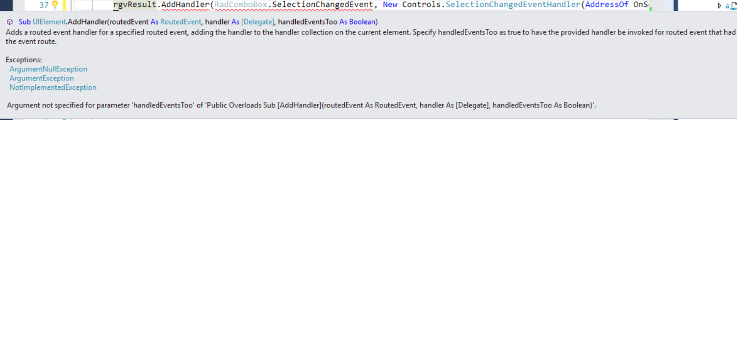 rgvResult.AddHandler(RadComboBox.SelectionChangedEvent, New Controls.SelectionChangedEventHandler(AddressOf OnSelectionChanged))