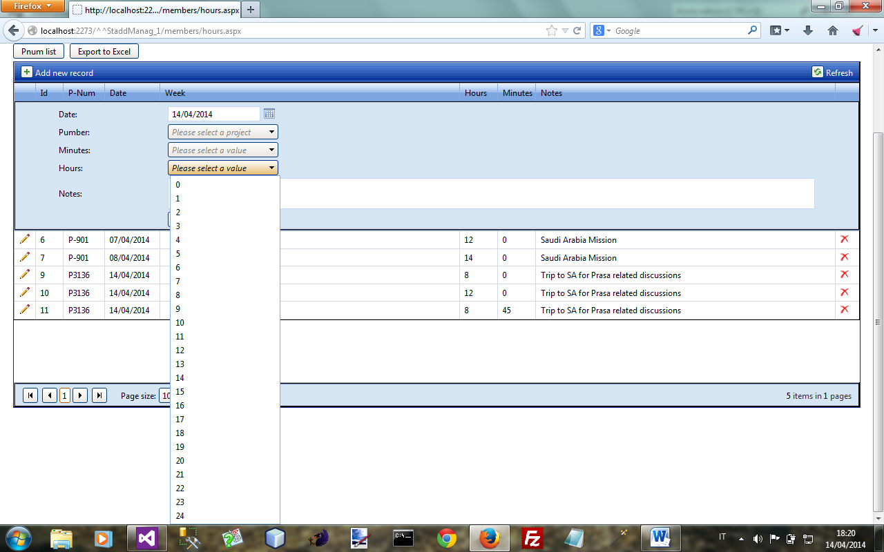 For the dropdownlist "hours" show the first 12" values and then the others only on demand.