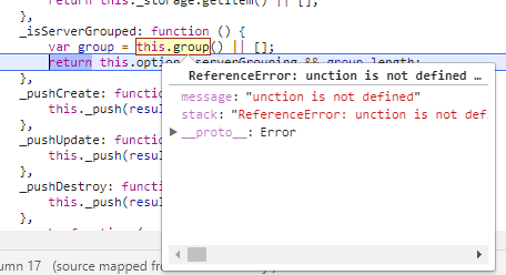 An error occur in kendo.all.min.js (kendo.all.js) where it is executing the function _isServerGrouped(). In that particular function it tries to execute the function this.group() only that function does not exist. Did I forget to include something or is this a bug in the Grid using the taghelper? Even when server-grouping is set to false it is still trying to execute that particular function this.group() before it is going to check if the server-grouped is used or not (see image).