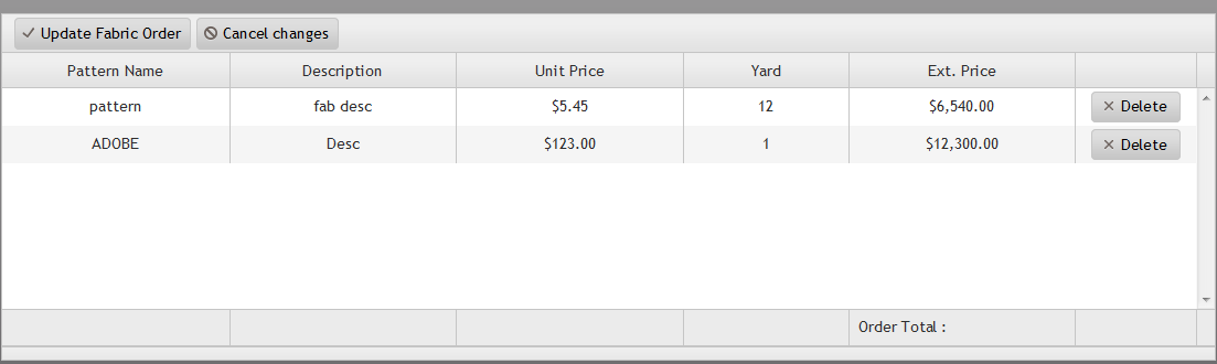I can load the data (not from SQL) to the grid with no problem but as soon as I change something on the grid and hit the "Update Fabric Order" button I get an "