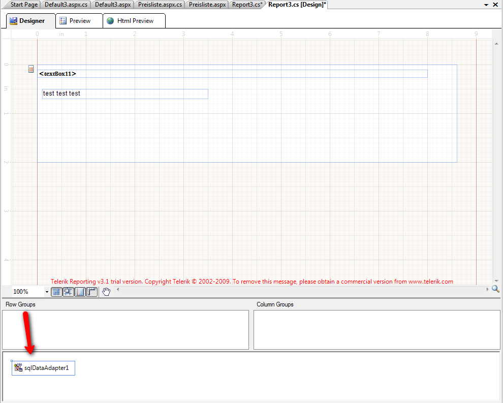 My reports have an sqlConection, sqlDataAdapter & sqlSelectCommand, and the report datasource is set to use the sqlDataAdapter.