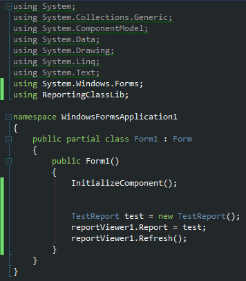 Below is what I get when I select the Report Property of the Report Viewer. In the video, the reports would show up in this list. The name of the report I want to appear in this list is TestReport.cs