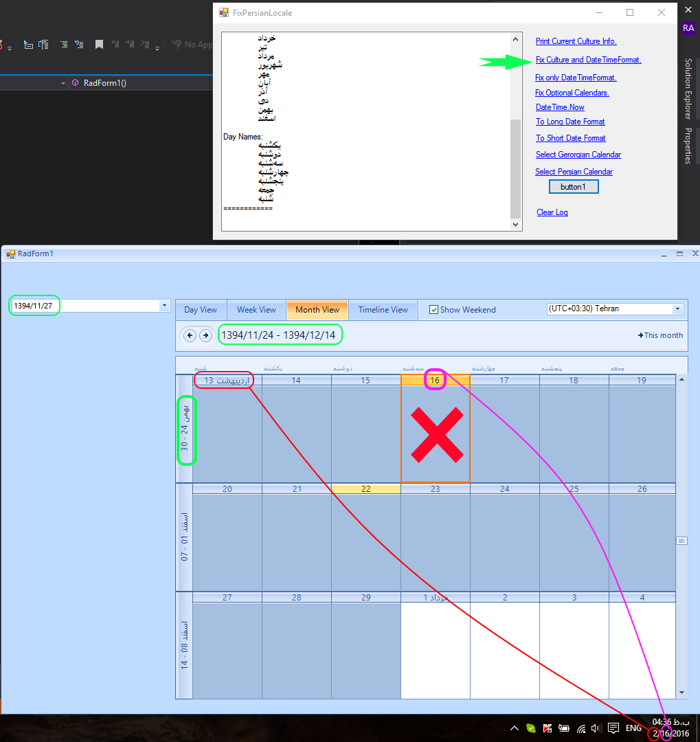 every things is OK. but there is a problem in scheduler MontheView and datepicker data entry.