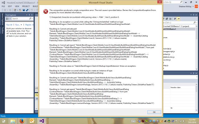 Resulting in: Cannot activate part 'Telerik.BlackDragon.Client.Mobile.Build.Views.BuildWizardDialog'.