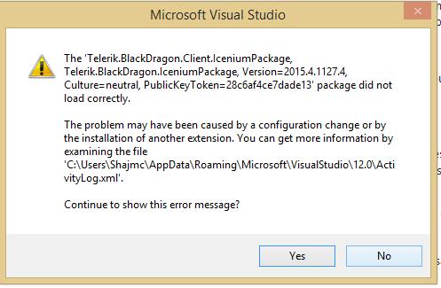 Then the project will not load and it says it's incompatible. (telerikerror2JPG)