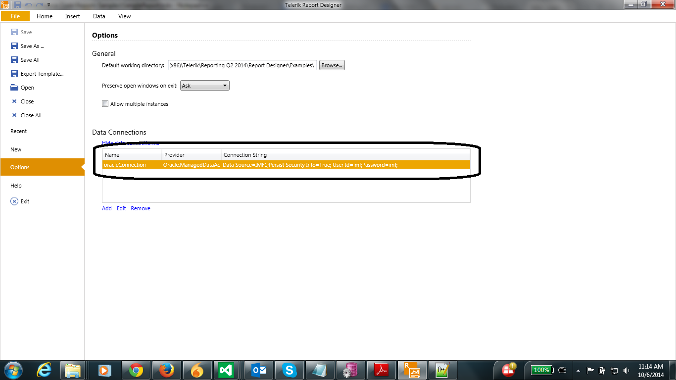 We have installed Report Designer Q2 2014, Visual Studio Express 2012 for Web and Oracle DB 11g. Right now I am able to design a report, connect to the Oracle DB by using SqlDataSource and able to preview the report contents as well.