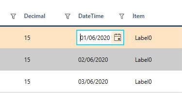 <telerik:RadGridView x:Name="ModifiableItems" Grid.Row="0" RowHeight="45" Margin="0,0,0,15" GridLinesVisibility="Horizontal" CanUserSortColumns="False" CanUserFreezeColumns="False" IsReadOnly="false" HorizontalAlignment="Left" VerticalAlignment="Stretch" IsFilteringAllowed="True" HorizontalContentAlignment="Left" RowIndicatorVisibility="Collapsed" ItemsSource="{Binding ModifiableItems, Mode=TwoWay, UpdateSourceTrigger=PropertyChanged}" SelectionMode="Single" > <telerikctrl:RadGridView.Columns> <telerik:GridViewDataColumn DataMemberBinding="{Binding String}" Width="*" EditorStyle="{StaticResource TextBoxRadGridViewStyle}" /> <telerik:GridViewDataColumn DataMemberBinding="{Binding Int}" Width="*" EditorStyle="{StaticResource TextBoxRadGridViewStyle}"/> <telerik:GridViewDataColumn DataMemberBinding="{Binding Bool}" Width="*"/> <telerik:GridViewDataColumn DataMemberBinding="{Binding Double}" Width="*" EditorStyle="{StaticResource TextBoxRadGridViewStyle}"/> <telerik:GridViewDataColumn DataMemberBinding="{Binding Decimal}" Width="*" EditorStyle="{StaticResource TextBoxRadGridViewStyle}" /> <telerik:GridViewDataColumn DataMemberBinding="{Binding DateTime, StringFormat=dd/MM/yyyy}" Width="*" /> <telerik:GridViewComboBoxColumn ItemsSource="{Binding ObservableCollection}" DataMemberBinding="{Binding Item}" DisplayMemberPath="Label" Width="*" EditorStyle="{StaticResource RadComboBoxRadGridViewStyle}"/> </telerikctrl:RadGridView.Columns> </telerik:RadGridView>