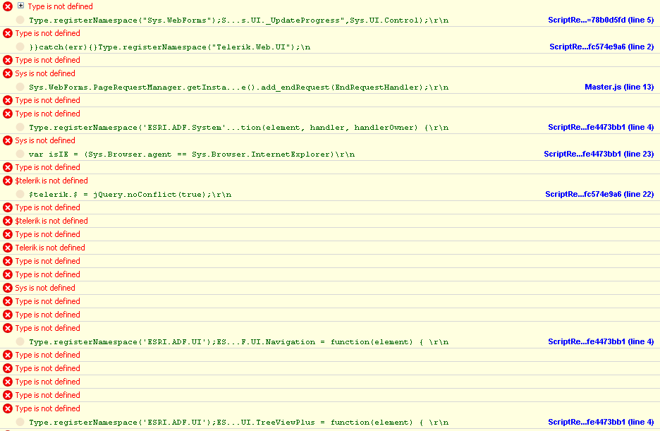 thanks a lot for the quick answer. I downloaded the latest internal build ( Telerik.Web.UI_2009_2_927_dev_hotfix.zip (Release notes)), included the dll, rebuild our solution, restarted the iis and the web app. Unfortunately the app doesn't come up after and a bunch of 47 java script errors appear (see attachment). Did I possibly miss something?