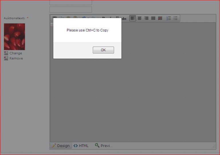 when i click on COPY button it open a dialog with following message