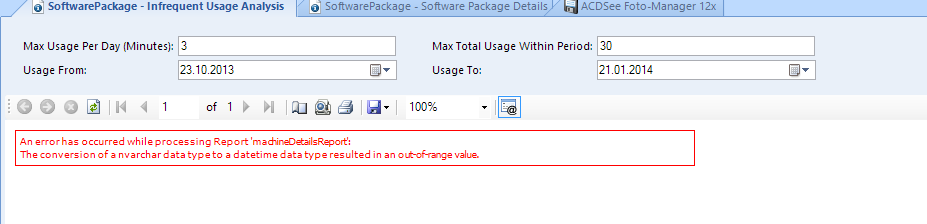 The report works when Regional Settings are set to English(US) but not when set to German(Switzerland)