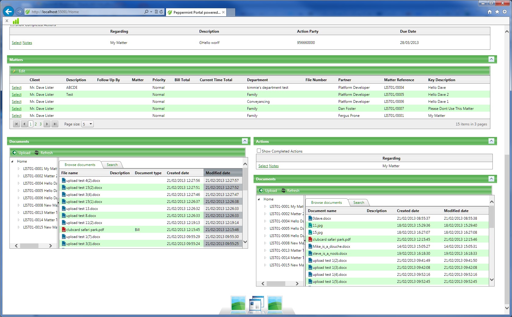 One of them, the title of the boxes (some... not all, i.e. Actions is there, but Matters and Documents is not) is missing and the treeview area is all squashed to the left. The other is almost correct, but a lot better than the bad one. As you can see, the titles are all there and you can see the treeview.