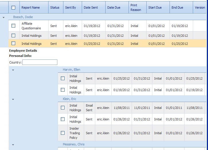<telerik:RadGrid ID="RadGrid1" runat="server" Skin="Office2007" AllowPaging="false" Width="100%" EnableLinqExpressions="true" AllowCustomPaging="false" AutoGenerateColumns="False" GridLines="None" AllowSorting="true" AllowFilteringByColumn="false" AlternatingItemStyle-BackColor="#eeeeee" ShowGroupPanel="False" ShowStatusBar="True" OnNeedDataSource="RadGrid1_NeedDataSource"> <AlternatingItemStyle BackColor="#EEEEEE"></AlternatingItemStyle> <MasterTableView Width="100%" DataKeyNames="DocumentLogID" PagerStyle-Mode="NextPrevNumericAndAdvanced" ClientDataKeyNames="DocumentLogID"> <GroupByExpressions> <telerik:GridGroupByExpression> <SelectFields> <telerik:GridGroupByField FieldAlias="" HeaderText=" " FieldName="AccessPerson" HeaderValueSeparator="" /> </SelectFields> <GroupByFields> <telerik:GridGroupByField FieldName="AccessPerson" HeaderText="Access Person" SortOrder="Ascending" /> </GroupByFields> </telerik:GridGroupByExpression> </GroupByExpressions> <Columns> <telerik:GridEditCommandColumn ButtonType="ImageButton" UniqueName="EditCommandColumn"> </telerik:GridEditCommandColumn> <telerik:GridTemplateColumn UniqueName="PrintDoc" HeaderText="Print"> <HeaderTemplate> <asp:CheckBox ID="headerChkbox" OnCheckedChanged="ToggleSelectedState" AutoPostBack="True" runat="server"></asp:CheckBox> </HeaderTemplate> <ItemTemplate> <asp:CheckBox ID="PrintCheckBox" runat="server" OnCheckedChanged="ToggleRowSelection" AutoPostBack="true" Visible="true"></asp:CheckBox> </ItemTemplate> </telerik:GridTemplateColumn> <telerik:GridBoundColumn DataField="DocumentLogID" Visible="false" UniqueName="DocumentLogID" /> <telerik:GridBoundColumn DataField="ClientID" Visible="false" /> <telerik:GridBoundColumn DataField="AccessPersonID" Visible="false" /> <telerik:GridBoundColumn DataField="ReportID" Visible="false" /> <telerik:GridBoundColumn SortExpression="ReportName" DataField="ReportName" HeaderText="Report Name" /> <telerik:GridBoundColumn SortExpression="StatusDescription" DataField="StatusDescription" HeaderText="Status" /> <telerik:GridBoundColumn DataField="DocumentStatusID" UniqueName="DocumentStatusID" Groupable="False" Visible="False" /> <telerik:GridBoundColumn SortExpression="SentBy" DataField="SentBy" HeaderText="Sent By" AllowFiltering="false" /> <telerik:GridBoundColumn SortExpression="DateSent" DataField="DateSent" HeaderText="Date Sent" DataType="System.DateTime" DataFormatString="{0:MM/dd/yyyy}" AllowFiltering="false" /> <telerik:GridBoundColumn SortExpression="DueDate" DataField="DueDate" HeaderText="Date Due" DataType="System.DateTime" DataFormatString="{0:MM/dd/yyyy}" AllowFiltering="false" /> <telerik:GridBoundColumn SortExpression="PrintReason1" DataField="PrintReason1" HeaderText="Print Reason" AllowFiltering="false" /> <telerik:GridBoundColumn SortExpression="StartDate" DataField="StartDate" HeaderText="Start Due" DataType="System.DateTime" DataFormatString="{0:MM/dd/yyyy}" AllowFiltering="false" /> <telerik:GridBoundColumn SortExpression="EndDate" DataField="EndDate" HeaderText="End Due" DataType="System.DateTime" DataFormatString="{0:MM/dd/yyyy}" AllowFiltering="false" /> <telerik:GridBoundColumn SortExpression="Version" DataField="Version" HeaderText="Version" AllowFiltering="false" /> </Columns> <EditFormSettings UserControlName="Controls/PrintDocDetails.ascx" EditFormType="WebUserControl"> <EditColumn UniqueName="EditCommandColumn1"> <ItemStyle Width="100%" /> </EditColumn> </EditFormSettings> </MasterTableView> <ClientSettings> <ClientEvents OnRowDblClick="RowDblClick" /> </ClientSettings> <FilterMenu Skin="Office2007" EnableTheming="True"> <CollapseAnimation Type="OutQuint" Duration="200"></CollapseAnimation> </FilterMenu> </telerik:RadGrid>