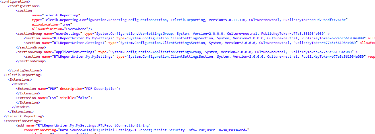 <Telerik.Reporting> <Extensions> <Render> <Extension name="CSV" visible="false"> </Extension> </Render> </Extensions></Telerik.Reporting>In order to open a support ticket you need to have a valid support subscription. Since your subscription has expired a year ago, you won't be able to do so.