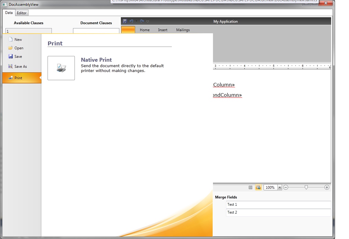 However, with the current implementation of the control you are allowed to control the position where the backstage is opened. The RadRibbonView exposes BackstageClippingElement property. If you define a fixed size control hosting the RadRibbonView and set its x:Name attribute, you will be able to apply element name binding on that property. If you do so the backstage will be rendered on top of the predefined control - rather than on top of the main window. For better understanding you can use the following snippet: