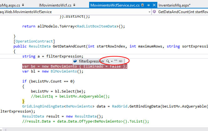 <DataBinding Location="~/MovimientoWcfService.svc" SelectMethod="GetDataAndCount" SortParameterType="Linq"