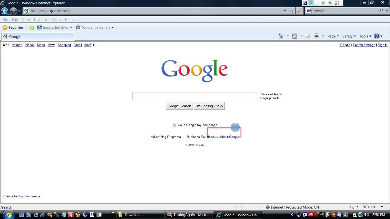 When I also navigate to Google.com it does the same thing, so I don't think it is application specific. I'm beginning to believe it is some other setting somewhere on my machine? I am using IE 8;