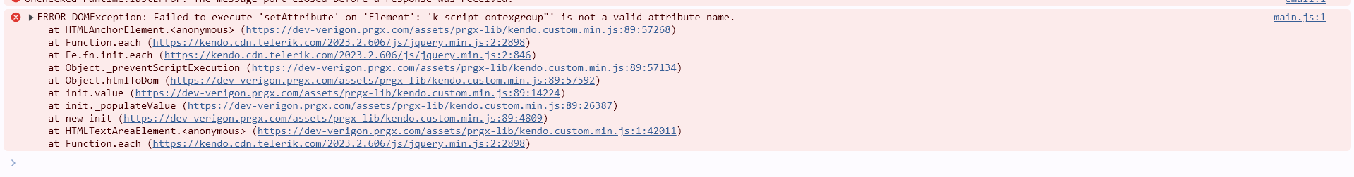 We are using Kendo Editor to represent some HTML, but the same is returning the error "k-script-<dynamic value>", on further debugging the same seems to be coming from the preventScriptExecution method and is failing for some keywords.