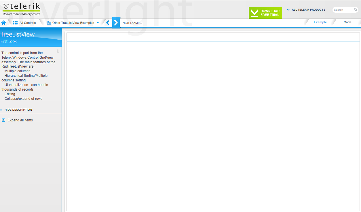 Something else: I found that the online demo (http://demos.telerik.com/silverlight/#TreeListView/FirstLook) of the RadTreeListView is not working anymore.