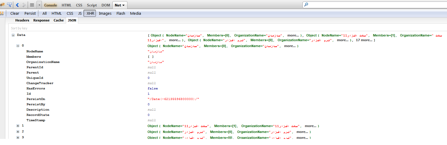 @using Kendo.Mvc.UI@model IEnumerable<Ets.Data.EmployeeSystem.OrganizationChart>@(Html.Kendo().TreeView().Name("treeview") .DataTextField("NodeName") .DataSource(dataSource => dataSource.Read(read => read.Action("LoadOrganizationChart", "OrganizationChart"))) )i trace the result with firebug and attach the image.