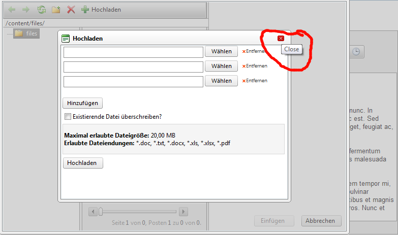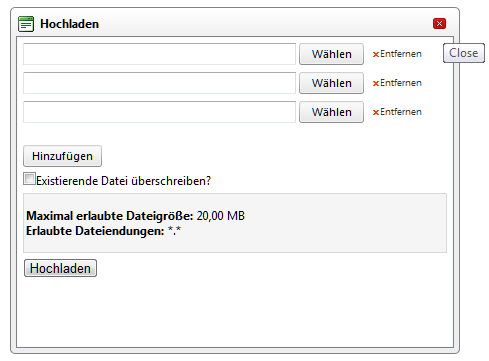 protected void Page_Load(object sender, EventArgs e) { RadFileExplorer1.WindowManager.Localization.Close = "Schliessen"; }- use a global localization for all RadWindows on the page via JavaScript by placing the following script at the end of the page: