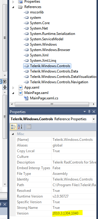 My controls version is : 2010.3.1304.1040 (i have installed them because with RadControls_for_Silverlight_4_2010_3_1110_DEV.msi controls installed before it was not working equally !)....