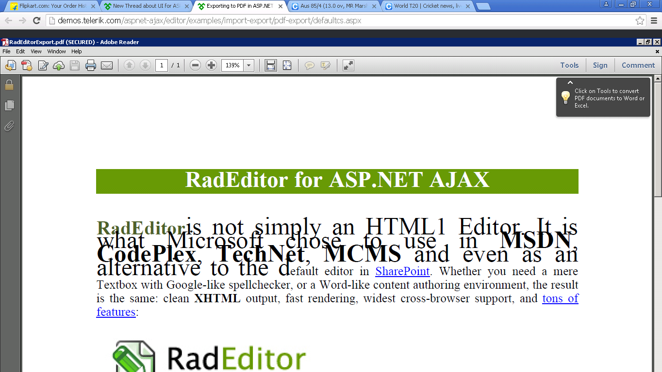 http://demos.telerik.com/aspnet-ajax/editor/examples/import-export/pdf-export/defaultcs.aspx