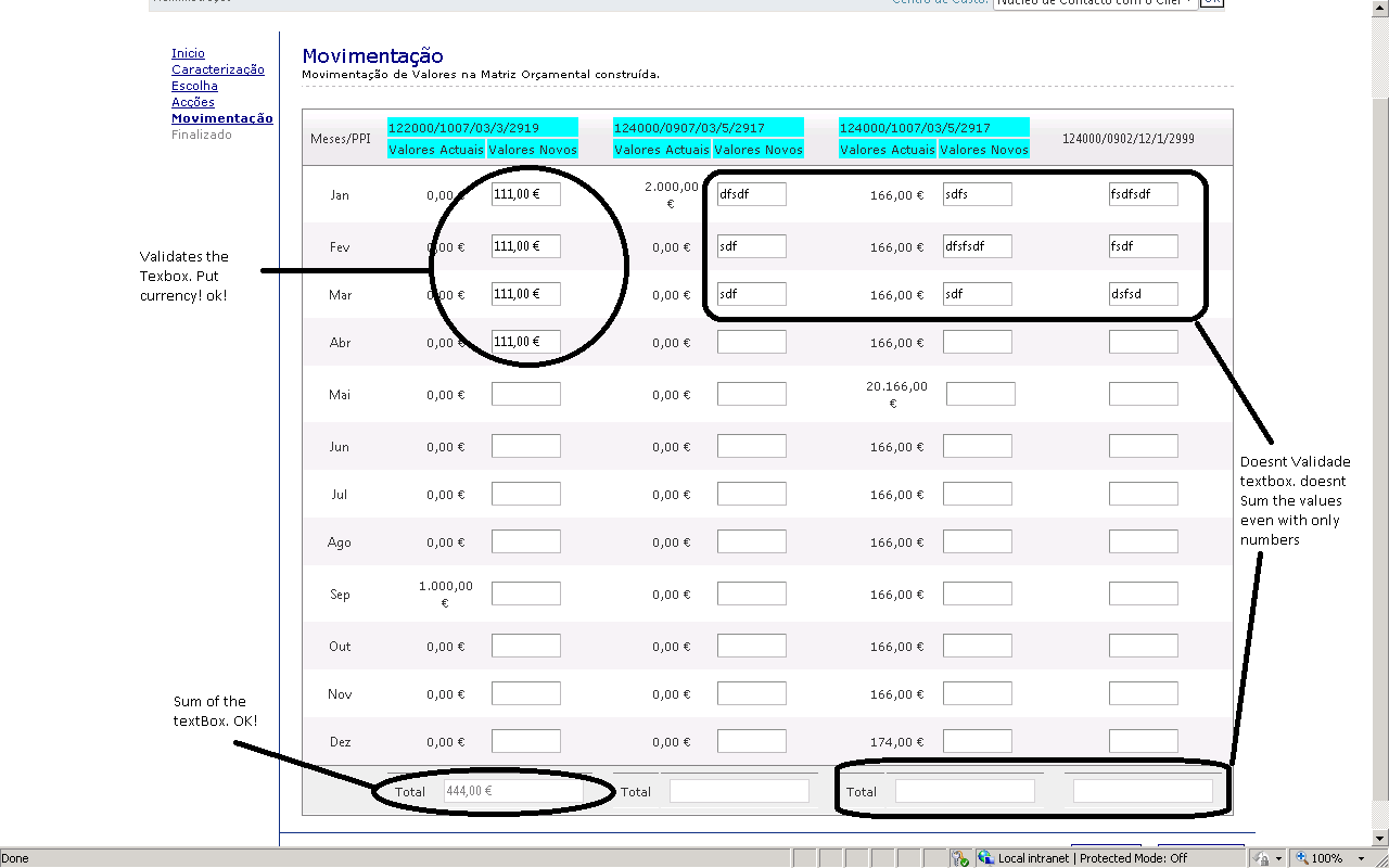 My problem is, for the first column, all works out great, with the numeric RadNumericTextBox validating good, the footer sums the values i put on the items RadNumericTextBox and it's perfect. But for the other columns, the it seems like it's a normal textbox. No validation is made, the the footer doesnt sum up the values. In attachment is the imagem of the final grid.
