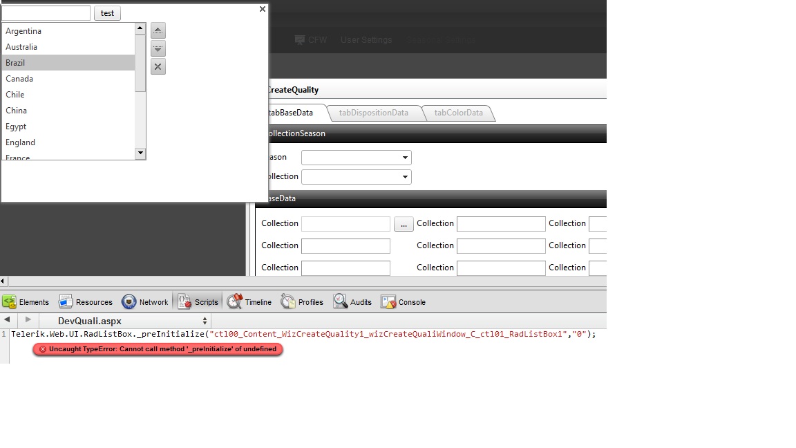 <div style="display: none;"> <telerik:RadListBox runat="server" ID="listBox"> </telerik:RadListBox> </div>to get the script loaded into the WebRessource.
