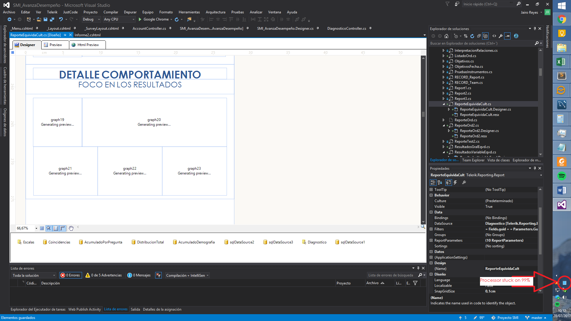 Hello, im having some issues with the report designer, im developing a report that has quite a lot of graphs and everytime i try to open the report devenv.exe hangs at 99% processor usage, and i know its because the graph previews, is there any way to disable the previews? or can you give me some workaround?