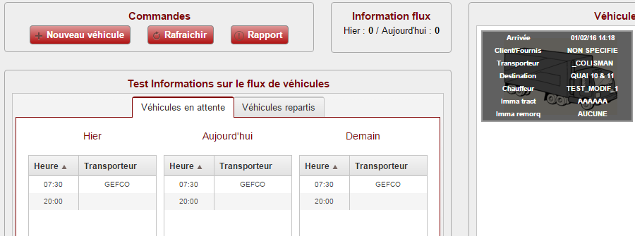 <!-- Description : Vue partielle affichant la grille des vehicules attendus sur le site -->