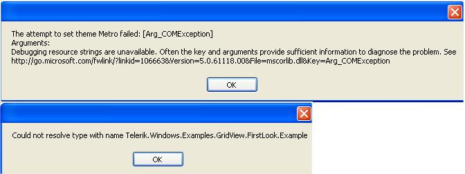 Are the silverlight demos broken for everyone or just me? I get error messages like this on the Docking, ScheduleView and RibbonBar controls.