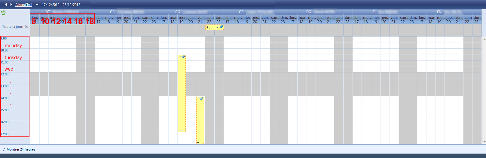 if (e.TimeSlot.Start.TimeOfDay < new TimeSpan(8, 0, 0)|| e.TimeSlot.Start.TimeOfDay >= new TimeSpan(18, 0, 0)){ e.TimeSlot.Control.Style.Add(HtmlTextWriterStyle.Width, "0px");}else{ ... }Problem : the Appointments don't appear correctly. (cf. caprture n° 2)