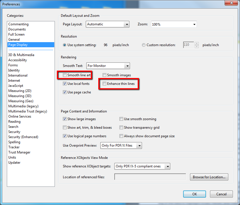 Problem 3. You are correct that when the setting "enhance thin lines" is disabled, the problem goes away, however i can not uncheck the other setting "Smooth line art" (it's disabled), but... Is it really acceptable that i need to tell my users to change their settings in order te see the report without this layout problem? Why doesn't telerik support these features of Acrobat Reader?