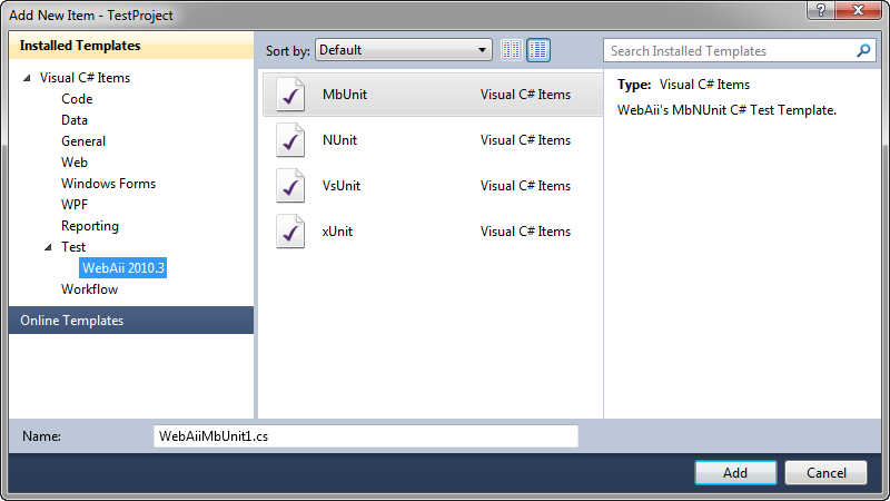 I download and installed the last version of WebAii Automation Framework (Version: 2010.3 1421 ) in order to evaluate the tool. All the components I got after several tries, are samples code and a quick link to this forum. I cant see the WebUii test form to add into my Visual Studio C# project, not even when I added the reference manually, which by the way, are not being referenced automtically as described in the installation guide.